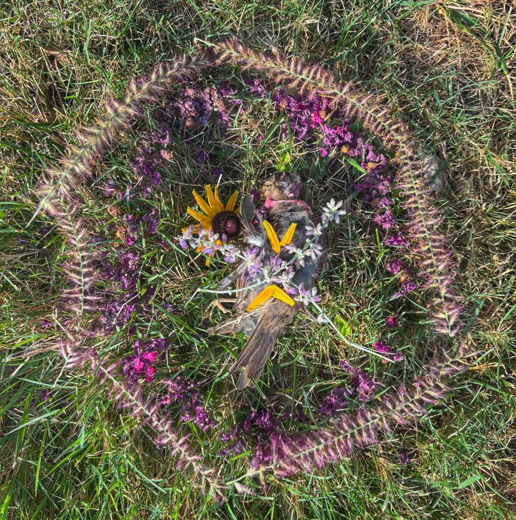 It is a simple gesture of gratitude for the life that was lost and does not ask to be noticed. She simply does it to connect to something bigger than her. Surrounding the dead with the beauty of nature, itself, is the ritual. Flowers, leaves, stones, and other gifts the Earth beckons us to discover.