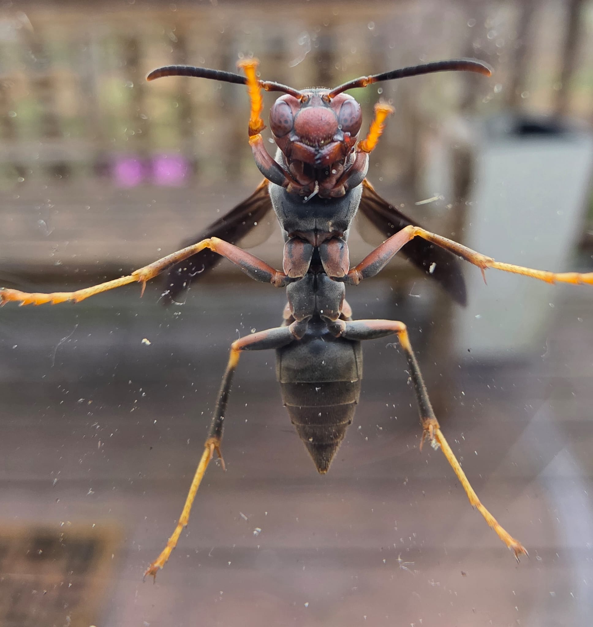 I’m not sure if this one below perished in the great Human – Wasp battle of 2026, but I do want to take a moment to appreciate her. She came to the window one day, splayed out and staring inside – or maybe not, maybe she was just resting and the window was a warm spot to land – begging for her picture to be taken.